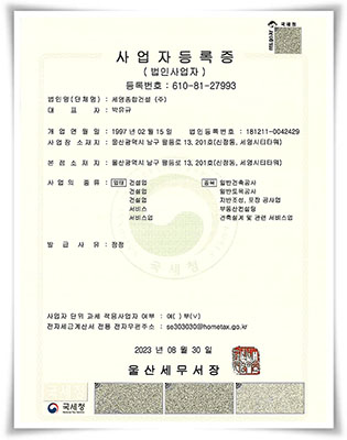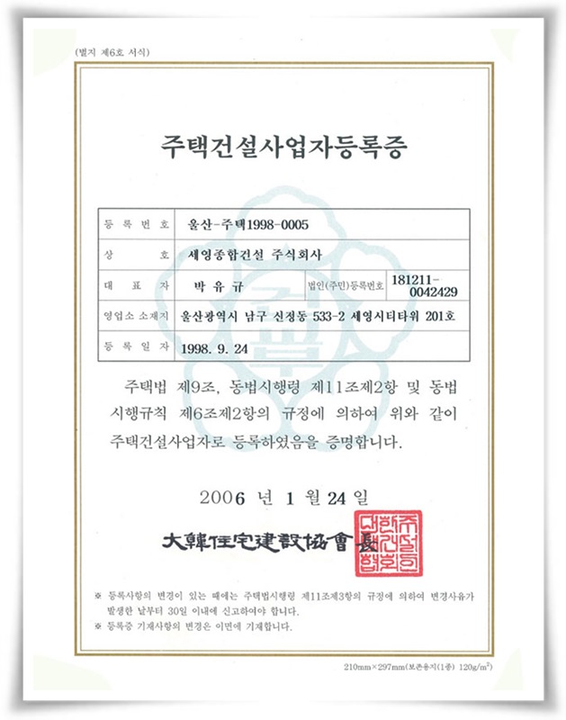 주택건설사업자 등록증