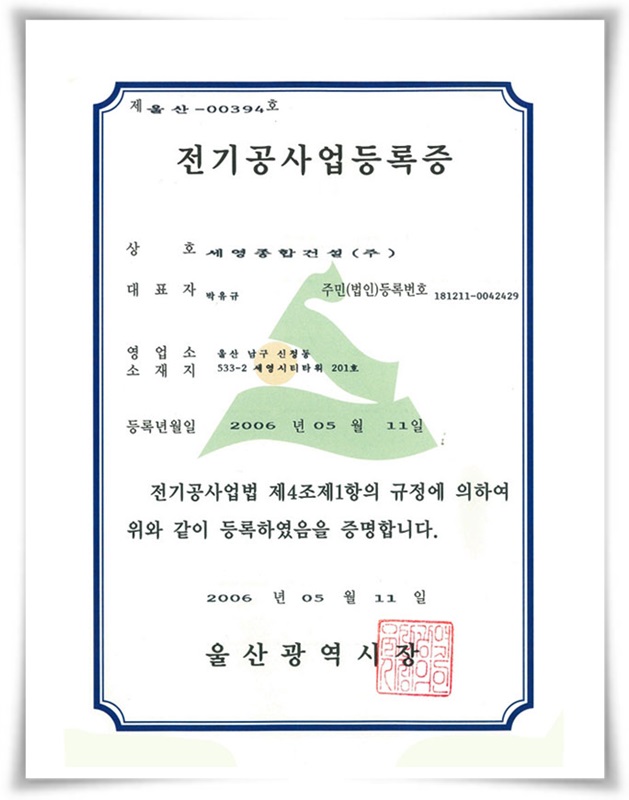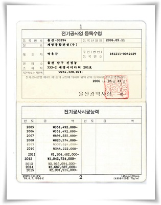 전기공사업 등록증