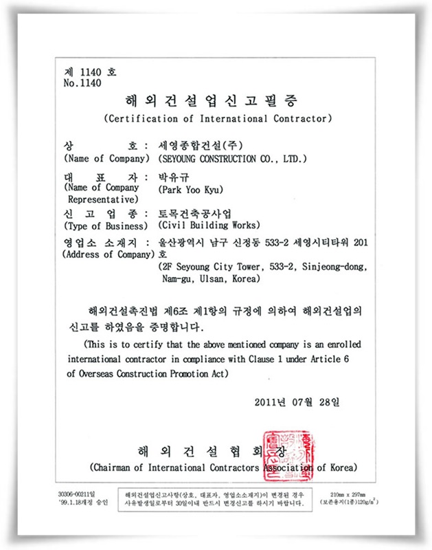 해외건설업 신고필증(토목건축공사업)