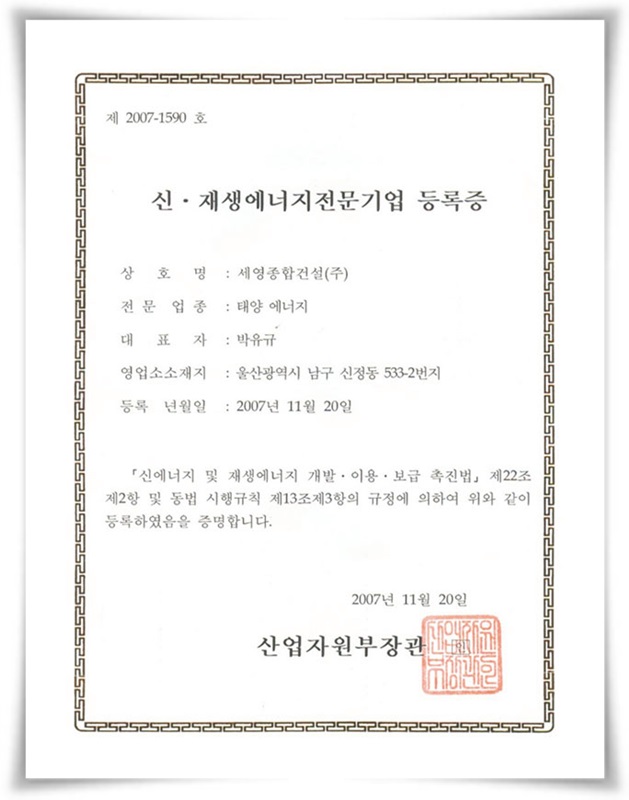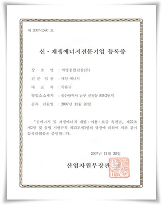 신·재생에너지전문기업 등록증