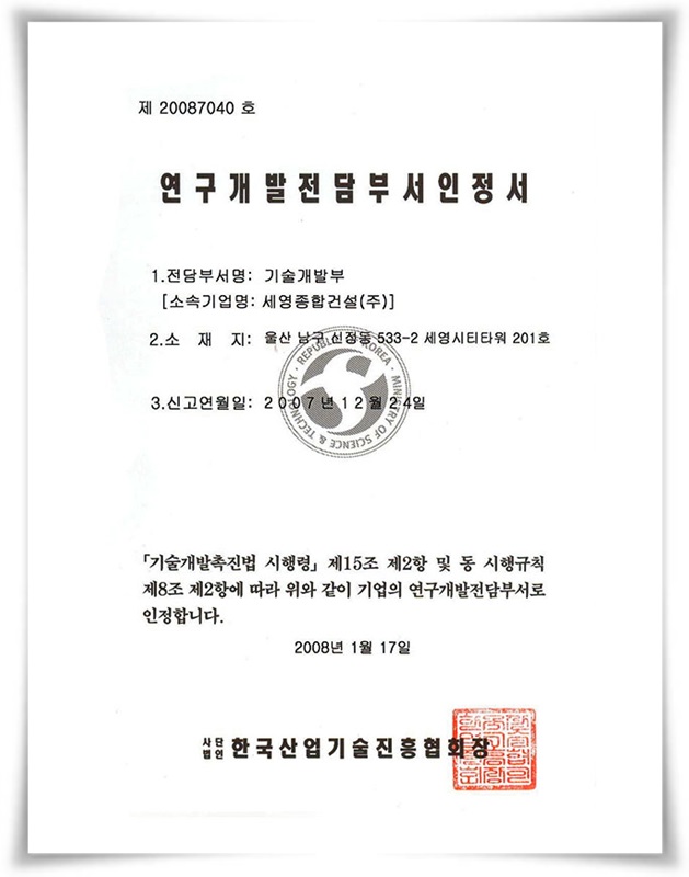 연구개발전담부서 인정서