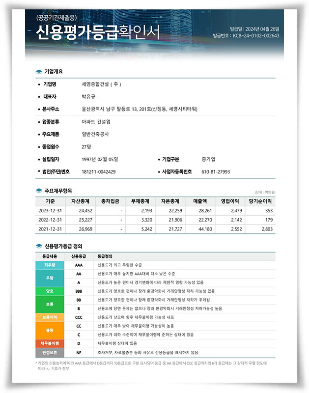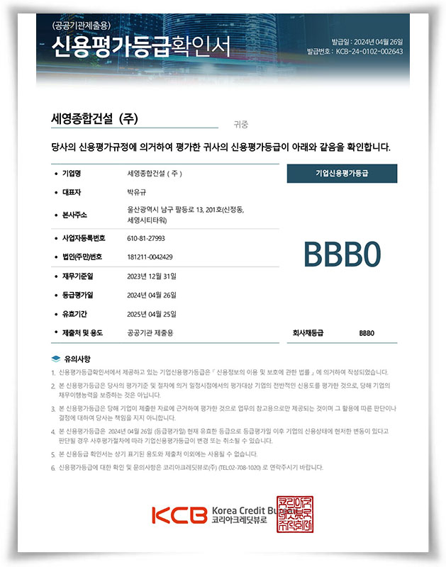 세영종합건설 주식회사의 정보를 다운로드하여 보실 수 있습니다.