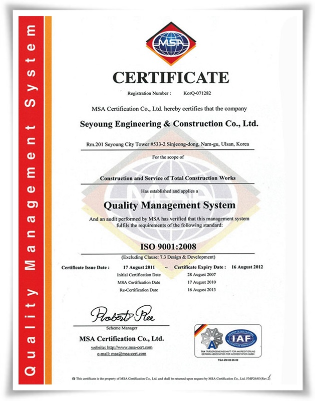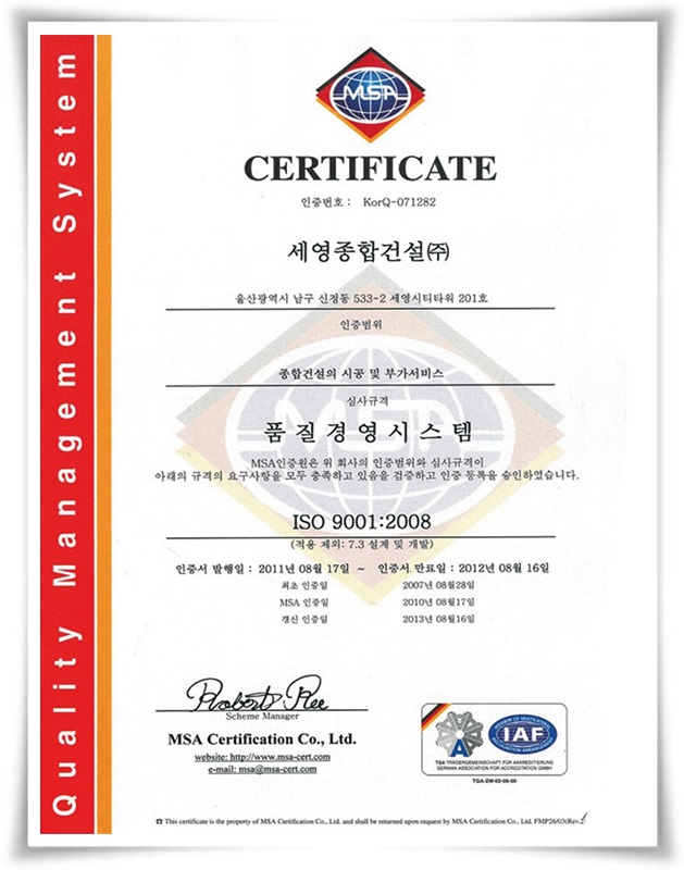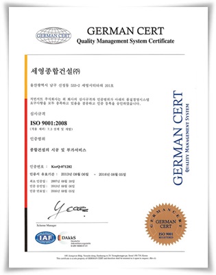 ISO 9001:2008 인증