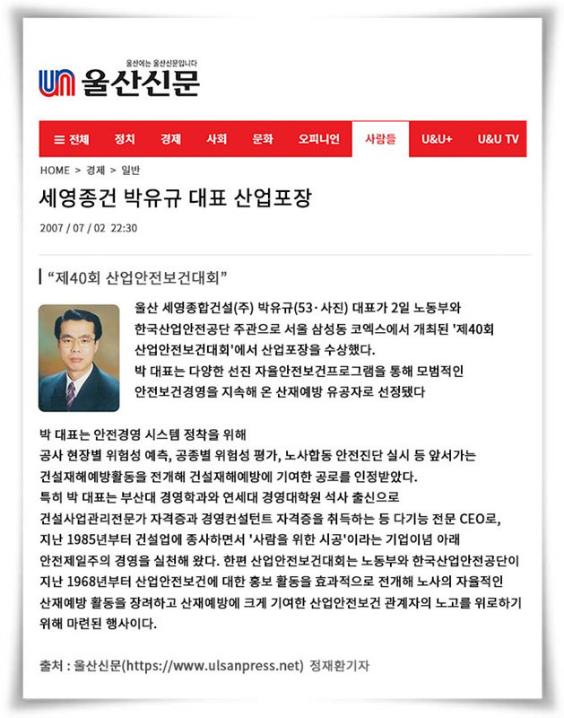 산재예방 유공자 (산업포장)