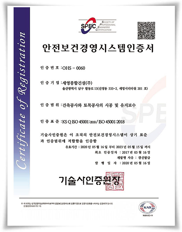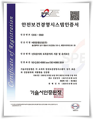 안전보건경영시스템 인증서 OHS-0060