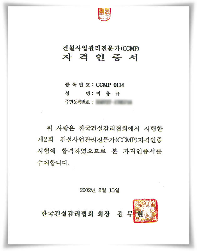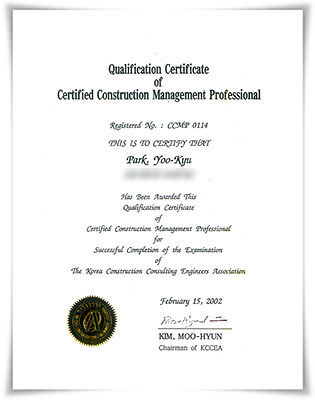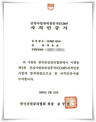 건설사업관리전문가 자격인증서